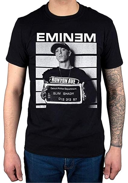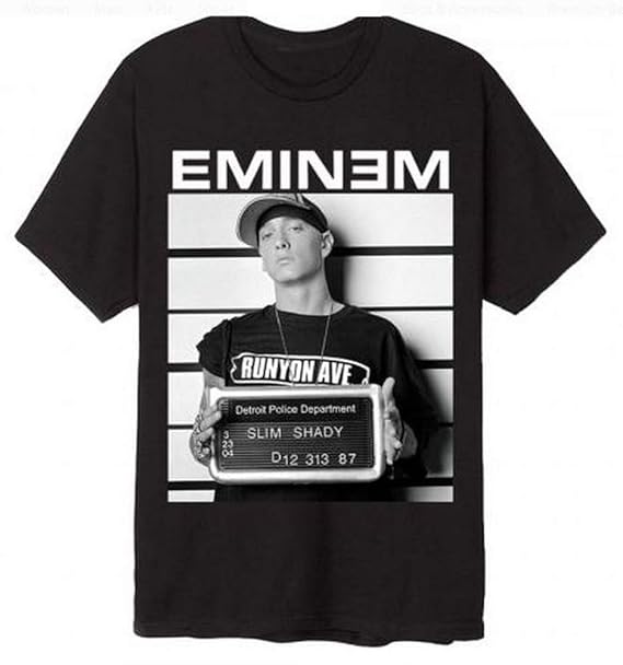 Eminem Mens Slim Shady Mugshot Rap Hip Hop Black S S T Shirt