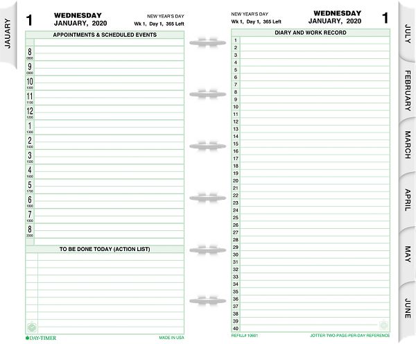 2 Page Per Day Reference Planner Refill Jotter Size 10601 Day